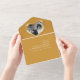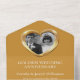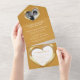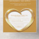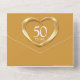 Golden wedding anniversary party event with one photo holder, detachable RSVP, and no envelopes required invitation design. Beautiful liquid gold effect in a heart shape printed graphics 50 years wedding anniversary invitations, personalise with your own wedding anniversary party details, a photo of the happy couple. The twenty-fifth wedding anniversary is traditionally associated with gold metal and the heart symbolises love. Other matching items are available. Graphics and design by Sarah Trett for www.mylittleeden.com and www.mylittleedenweddings.com