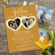 Golden wedding anniversary 50 years party gold coloured with real gold foil highlights two graphic hearts. 50th gold wedding anniversary party event with two photos on the front in hearts and four photos on the back. Personalise with your own wedding anniversary party details and photos. Other matching items are available. Art and design by www.mylittleeden.com and www.mylittleedenweddings.com on Zazzle.