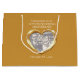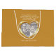 Personalise this Golden wedding anniversary photo gift bag with your happy couples photo and year of marriage. Reads Congratulations on your Golden Wedding Anniversary 15th August 1975 to 2025. Ideal to fill with your choice of two photos for a unique way to give a special golden anniversary gift or present to celebrate 50 years of marriage. © Original graphic art and designed by Sarah Trett.