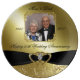 A Digitalbcon Images Design featuring a Black Satin Ribbon and Gold Glitter Flourish Frame theme with a variety of custom images, shapes, patterns, styles and fonts in this one-of-a-kind "Golden Wedding Anniversary" Photo Porcelain Plate. This elegant and attractive design comes with customisable Photo image and text lettering on the front and is sure to create years of enjoyment in viewing all your memorable photos on your special Golden Wedding Anniversary. THIS DESIGN IS ALSO AVAILABLE IN COMPLEMENTARY PRODUCTS SUCH AS PHOTO INVITATIONS, THANK YOU NOTES, BINDERS, ORNAMENTS, BUTTONS AND STICKERS, TO COMPLETE YOUR SPECIAL EVENT.