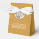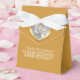 Golden wedding anniversary party thank you gift box. Personalise with your name and commemorative photo. Great to add a touch of personalised golden hue to your fifty years golden wedding anniversary party, dinner parties and informal gatherings. Ideal gift packaging for favours or to place on reception dinner tables or party tables filled with sweets or gifts. Would also make a nice parting commemorative thank you for coming gift. Gold yellow and white gold heart effect art and design by Sarah Trett.