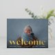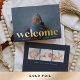 Fresh and modern birth announcement cards feature a full bleed horizontal or landscape orientated photo with "welcome" overlaid in gold foil lettering. Personalise with baby's name and birth stats beneath, and add three additional photos to the back, along with a personal message.