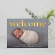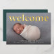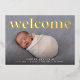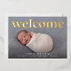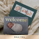 Fresh and modern birth announcement cards feature a full bleed horizontal or landscape orientated photo with "welcome" overlaid across the top in gold foil lettering. Personalise with baby's name and birth stats at the bottom, and add three additional photos to the back, along with a personal message.