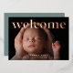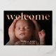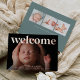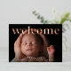 Fresh and modern birth announcement cards feature a full bleed horizontal or landscape orientated photo with "welcome" overlaid across the top in rose gold foil lettering. Personalise with baby's name and birth stats at the bottom, and add three additional photos to the back, along with a personal message.
