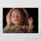 Fresh and modern birth announcement cards feature a full bleed horizontal or landscape orientated photo with "welcome" overlaid in gold foil calligraphy script lettering. Personalise with baby's name and birth stats beneath, and add three additional photos to the back, along with a personal message.