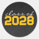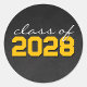 Golden Yellow and White Chalkboard Graduation Circle Stickers - Dark Chalkboard