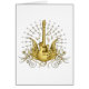 Fantasy style musical design features a golden winged guitar with scolling accents and music notes.