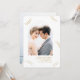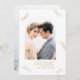 This beautiful two photo wedding invitation features an elegant print of simple golden colour curvy wisps on a white background. The front includes a trendy geometric arch shape photo, and the back is a full bleed photo of the happy couple.