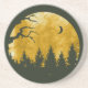 This aesthetic design depicts a scene in the night woods in awesome gold colours with a tree and forest silhouette and a crescent moon.