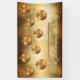 Destei's original illustration of golden yellow colour festive Christmas baubles that have a snowflake pattern on them. The background is a beautiful yellow and brown colour bokeh. There are also two personalizable text areas.