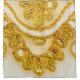 Golden yellow lace stripe. Background texture, sunrise. A smooth slope of the rows of round golden-yellow sequins on a thin openwork lace mesh.