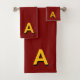 Golden Yellow Monogram on Maroon Bath Towel Set