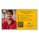 A golden yellow background, black text. Personalise and add Your photo, name, title, phone number, mail and website address, add your own QR code to your website or social media account.