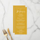 Simple style, golden yellow colour dinner menu card for your wedding that features white, stylised script along with your personalised information. Edit menu card and replace wedding names and date along with menu items that will be served at your wedding reception. Select your menu card style as desired.
