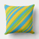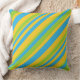 Golden Yellow, Sky Blue, Green Diagonal Stripes Cushion