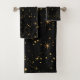 Golden Yellow Stars Black Night Sky Bath Towel Set