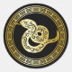 Golden Zodiac Snake on Black with Frame Classic Round Sticker
