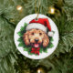 Celebrate the holiday season with our festive goldendoodle Christmas Wreath Ornament. This charming ornament features a vibrant illustration of a green Christmas wreath, with the adorable face of a goldendoodle wearing a cheerful red Santa hat at the centre. Perfect for dog lovers and holiday enthusiasts, this delightful decoration adds a touch of festive cheer to any Christmas tree. Made from high-quality materials, it ensures lasting beauty year after year. Hang it on your tree or gift it to friends and family for a heartwarming holiday surprise.