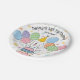 I ordered personalized baby shower plates and I loved them and they were delivered on time they were personalized with thanks for showering our little peanut. The printing turned out good but edge of plates had like tears around the edges I would recommend them to any one having a baby shower or party