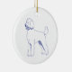 Classic design in blue and white. Blue line drawing of a Goldendoodle dog breed on a white background.