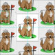 Golf Goldendoodle - Cute Doodle playing golf on the golf course with golf club, golf ball, and cap/hat. Copyright © Angi Laframboise. Funny dog breed and sports related cartoon gifts for dog lovers and golf lovers.