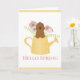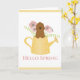 Cartoon illustration of a Goldendoodle popping out of a watercan filled with flowers. Perfect for summer and spring!