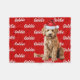 Your dog deserves a blanket of their own, especially with their name and breed on it. Fun throw to warm the season by the fireside or tossed over the sofa. A cute Goldendoodle wears a Santa cap for the dog lover's holiday home decor. Background colour is yours to change.