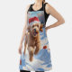 Goldendoodle Running in Snow with Christmas Hat Apron