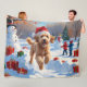 Goldendoodle Running in Snow with Christmas Hat Fleece Blanket