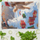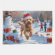 A fluffy Goldendoodle runs playfully through the snowy winter scene, wearing a festive red Christmas hat. This lively design highlights the breed’s curly coat, affectionate nature, and cheerful personality while capturing the joyful spirit of the holiday season. A heartwarming winter moment filled with festive charm.