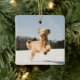 This is a lovely ornament, and great that you personalise the back with details of birthday, weight, etc.. My only tiny disappointment is the "My First" doesn't stand out very well on the background. More than happy with the printing of the photo and the writing on the back.
