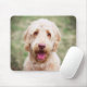 Up close shot of a goldendoodle smiling. Designer dog, golden retriever and poodle.
