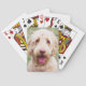 Up close shot of a goldendoodle smiling. Designer dog, golden retriever and poodle.