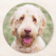 Up close shot of a goldendoodle smiling. Designer dog, golden retriever and poodle.
