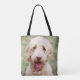 Up close shot of a goldendoodle smiling. Designer dog, golden retriever and poodle.