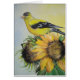 acrylics painting done of a goldfinch with sunflowers
