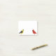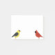 Cute cartoon goldfinch and cardinal perch in either corner.