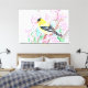 Goldfinch and Dogwood Flowers - watercolor and pen design by Annie Mason. Beautiful canvas to give that blank wall a spring look.