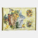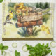 Decorative yellow goldfinch kitchen towel - Mountain scene with rustic wood sign. Loden green trim. Thanks for looking.