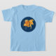 T-shirt with fantail goldfish, rudder and anchor nautical illustration on navy blue background.