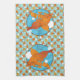 This graphic kitchen towel featuring orange goldfish with pale aqua and white bubbles is easily customised for a unique gift.