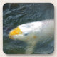 This lovely goldfish has the colouring of white with gold flecks all over and a distinctive gold triangle on its head. It was one of the very brave ones who came up to the surface of the lake and ate right out of my hand. Rewarded for courage the Goldfish came back several times and I was able to get a close photograph.