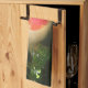 This awesome kitchen towel features a photograph of a nosy goldfish staring up from its watery world wondering what is going on. The fish is white with a pretty red marking on its head.