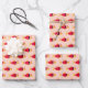 Fun Christmas wrapping paper sheets with a pattern of illustrated goldfish in Santa outfits on an orange background.