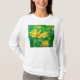 Bright yellow flowers on a blue and green background.