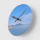 The clock did not take as long to arrive as I thought it might and was extremely well packaged. I didn't do the measurements so I didn't realize it is a little smaller than the average clock but that does not matter (just make sure you check if that's important to you).It is really nifty! It seems very solid and well made not flimsy at all. It has been going well and has kept good time in its few weeks on my wall. Nice product. Gets noticed too! Nicer in real life than the picture but true to the picture