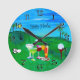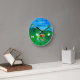 The clock did not take as long to arrive as I thought it might and was extremely well packaged. I didn't do the measurements so I didn't realize it is a little smaller than the average clock but that does not matter (just make sure you check if that's important to you).It is really nifty! It seems very solid and well made not flimsy at all. It has been going well and has kept good time in its few weeks on my wall. Nice product. Gets noticed too! Nicer in real life than the picture but true to the picture