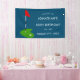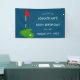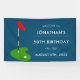 A simple illustration of a red golf flag, green and golf ball on a dark blue background features on this 50th Birthday Party banner. Customise the banner with your friend's, husband's, co-worker's, partner's, etc. name and birthday party date so your guests will know where to go.