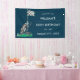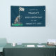 A watercolor illustration of a chequered golf flag, a golf bag on wheels, and a teed-up golf ball on a dark blue background features on this 50th Birthday Party banner. Customise the banner with your friend's, husband's, co-worker's, partner's, etc. name and birthday party date so your guests will know where to go.