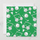 A simple illustration of a red golf flag, green and golf ball on a dark blue background features on this 50th Birthday Party Invitation. Use this card to celebrate your friend's, husband's, co-worker's, partner's, etc. 50th birthday with a game of golf followed by celebratory drinks and dinner. We added a golf-themed pattern with carts, clubs, balls, and flags to the back of the card and changed out the background colour. You can customise to your heart's content; even hide the pattern and add a photo if you prefer.